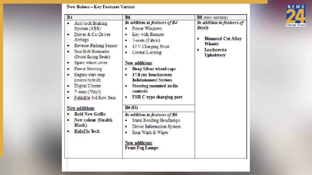 The all-new Bolero Neo will combine iconic toughness with urban sophistication, making it suitable for users who seek a bold, practical vehicle that offers modern comfort and capability. The new grille will have horizontal accents, and dark metallic grey R16 alloy wheels set the Bolero Neo apart. The car will now have two new interior theme options —-Lunar Grey and Mocha Brown — both of which will further enhance the appeal of the interiors.