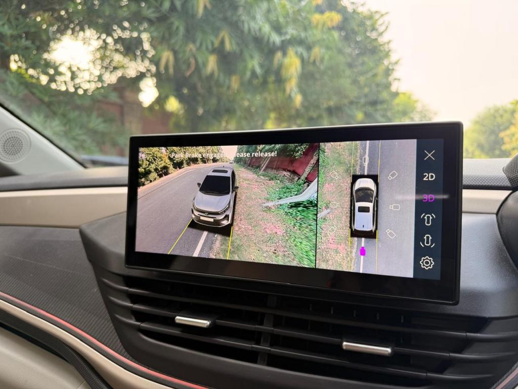 The model I drove was the second-from-top ‘Accomplished S’ variant of the Altroz i-CNG. Tata made a smart move by offering CNG in higher trim levels, so buyers don’t have to miss out on features for fuel savings. Highlights include a 10.25-inch touchscreen with wireless Apple CarPlay and Android Auto, a wireless charger, ambient lighting, a 7-inch digital cluster, a 360-degree camera, touch-based HVAC controls, a two-spoke steering wheel, and an electric sunroof.