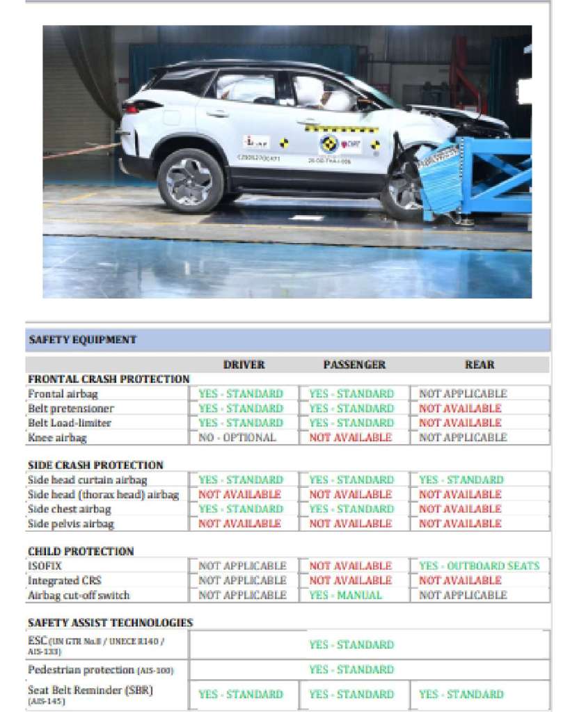 Tata Harrier EV recently went under a comprehensive crash test, conducted by Bharat NCAP. The vehicle was able to score a perfect 5 star safety rating for adult occupants and Child Occupants. Going by the full detailed version of the crash test report, the Harrier EV offers formidable protection to all the body areas in case of a frontal crash. The protection rating was scored as good with a perfect score of 16/16.
