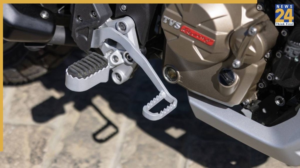 One of the best parts of the new Apache RTX is the option to mirror Google Maps navigation – a feature previously seen on the new Himalayan 450. The handlebar also gets both Type-A and Type-C USB chargers. Whether you buy the base or top variant, a bi-directional quickshifter comes as standard. The headlight is quite powerful, too. If you opt for the BTO variant, you also get adjustable suspension, a tire pressure monitoring system, and a brass-coated chain.