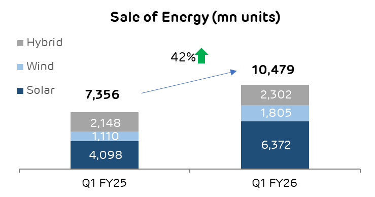 - Energy Sales: Increased by 42% YoY propelled by the robust capacity additions and strong operational performance.