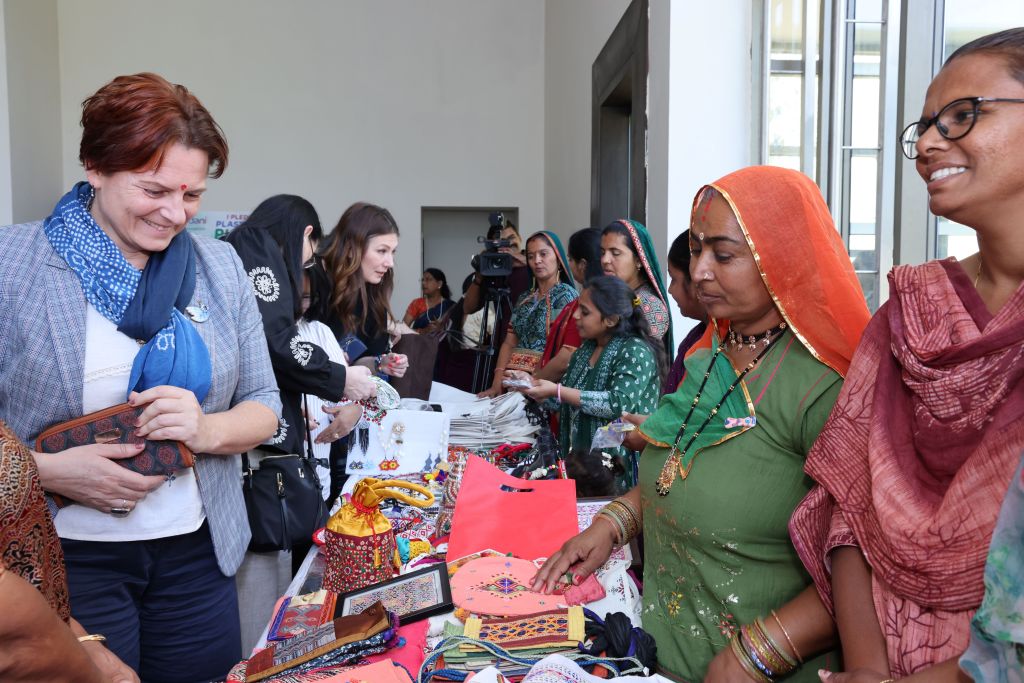 The delegation first visited Khavda, a remote site in western India’s arid Kutch district, where Adani Green Energy, the largest renewables company in India, is developing the world’s largest clean energy plant. Spanning an area five times the size of Paris, the 30 GW solar and wind energy project will play a critical anchor role in meeting India’s rising energy demands with clean, affordable and reliable power. The ambassadors saw firsthand how the renewables project is integrating cutting-edge technology with sustainable development, including the Energy Network Operations Centre (ENOC) overseen by women engineers.
