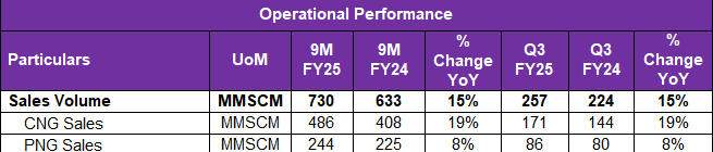 - CNG Volume increased by 19% Y-o-Y on account of CNG network expansion across multiple Geographical Areas (GAs)