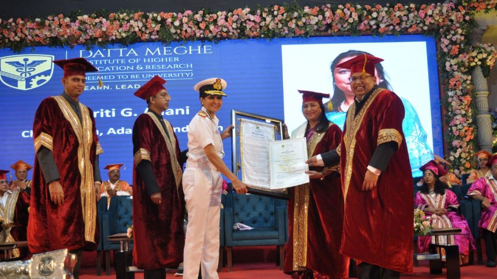 Dr Priti Adani was today conferred the title Doctor of Science (D.Sc.) Honoris Causa by Datta Meghe Institute of Higher Education & Research (Deemed to be University), Wardha, Maharashtra.