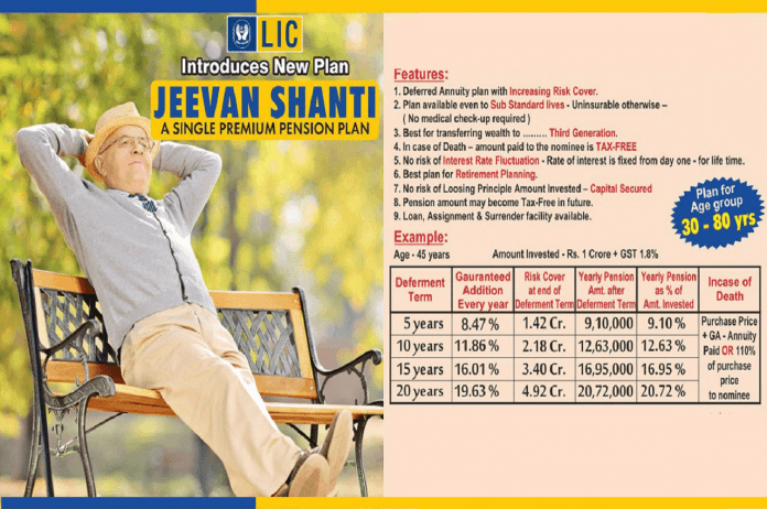 The LIC's New Jeevan Shanti is an excellent alternative for anyone looking to retire early with a fixed monthly, quarterly, semi-annual, or annual cash flow. One must pay a purchase price and wait for the deferment time to expire (from 1 to 12 years).
