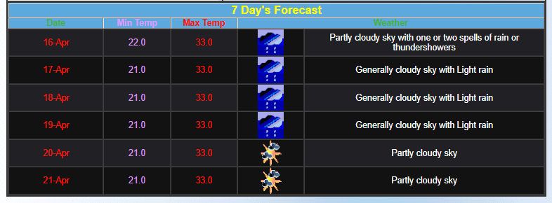 The India Meteorological Department’s weekly forecast indicates a warming trend with daily high temperatures reaching 33 degrees Celsius. The Met Department shared a five-day weather forecast for Bengaluru, highlighting the likelihood of cloudy skies accompanied by light rain. On the 17th, 18th, and 19th April, the weather body has predicted a generally cloudy sky with light showers over the city. Thereafter, on 20th and 21st April, residents may wake up to a partly cloudy sky with minimum temperature reaching 21 degrees Celsius, particularly during the nighttime. IMD has issued a yellow alert in the city.