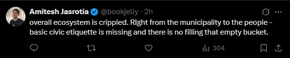 Her comment points out the ongoing problems with the city’s infrastructure, cleanliness, and road conditions, which have frustrated residents for a long time.