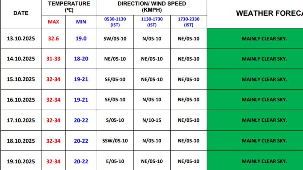 Delhi will wake up to a mainly clear sky until October 19, with no forecast for rain, thunderstorms, or lightning.