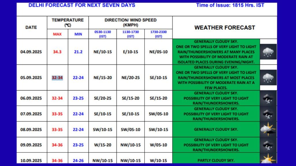 Heavy rains lashed Delhi-NCR on September 4, as monsoon conditions remain intense. In light of the current situation, here is the India Meteorological Department’s (IMD) weather forecast for Delhi, Gurugram, and Noida for Friday, September 5.