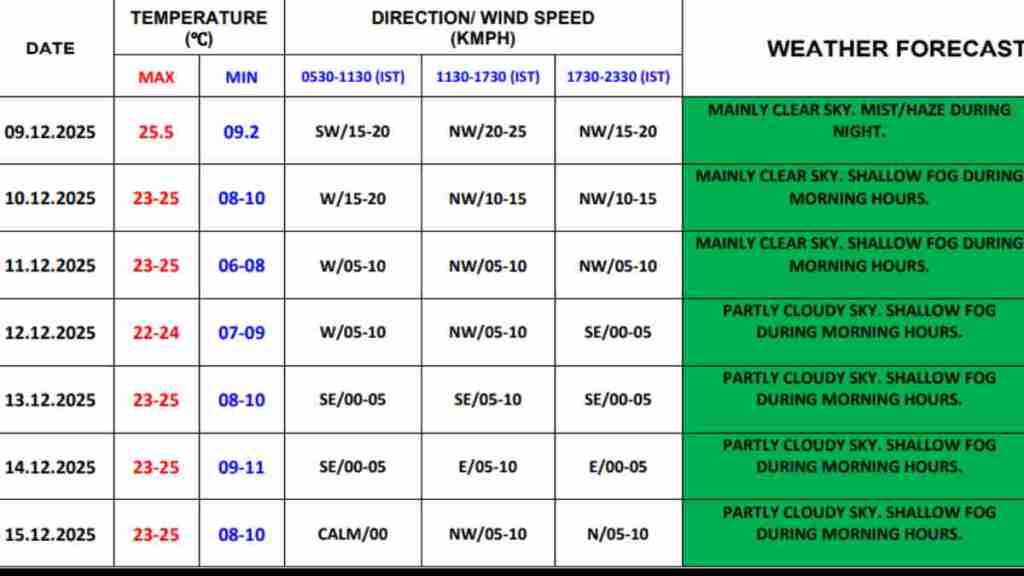 According to the Air Quality Early Warning System for Delhi, the air quality will likely be in the ‘very poor’ category on December 11 and 12. The outlook for the subsequent 6 Days shows the AQI in the ‘severe’ to ‘very poor’ to ‘severe’ category.