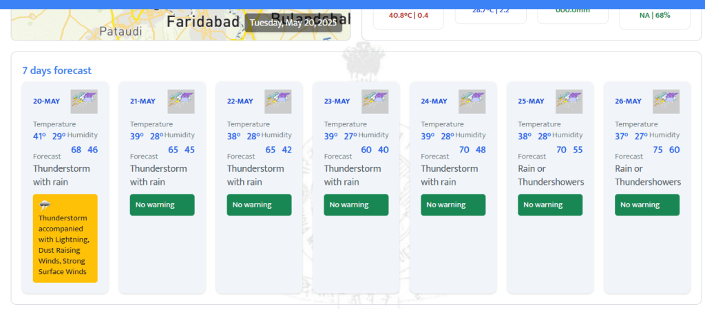 May 35: Very light to light rain/thunderstorm/lightning and gusty winds (speed 30-40 kmph) temporarily reaching to 50 kmph during thunderstorm have predicted for Sunday.