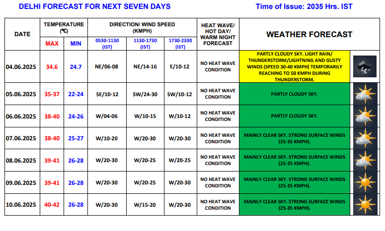 The weather in the national capital will change from June 6, as the IMD has not forecast rain on remainder days of the week.