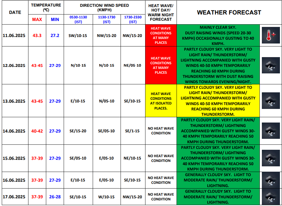 Thereafter, on 16th and 17th June, Delhi is set to see a generally cloudy sky accompanied by light showers. Meanwhile, the Weather Body has predicted no heatwave conditions in Delhi from 14th to 17th June. Additionally, the temperatures may go below 40 degrees Celsius by coming Tuesday.
