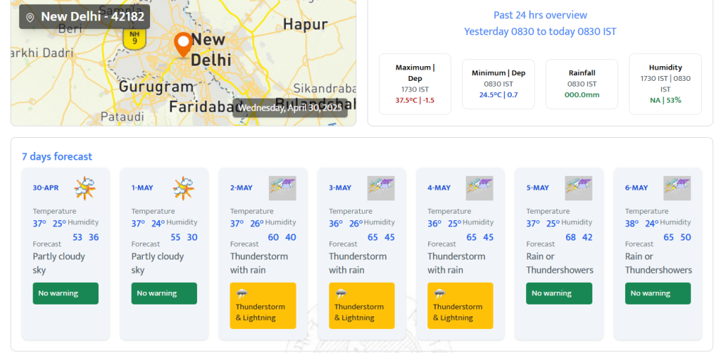 Talking about how the weather will be on Wednesday, April 30, the IMD forecast tells of partly cloudy sky. The maximum temperature will remain 37 degrees Celsius with humidity level of 53 per cent. Strong surface winds with speed of 20-30 km/h will prevail over the national capital. No heatwave alert has been issued for the capital today, indicating relatively pleasant weather.