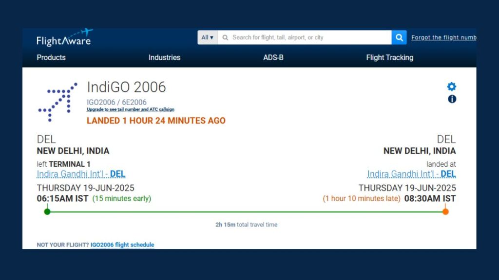 A Leh-bound IndiGo flight made an emergency landing on Thursday at Indira Gandhi International (IGI) Airport in Delhi. The flight carrying 180 passengers was en route to Leh from Delhi. After reporting a technical snag mid-air, the flight 6E2006 was forced to return shortly after departure. The fight landed safely around 1 hour 14 minutes ago. All passengers have been deplaned safely. Further investigation is underway to determine the nature of the technical issue.