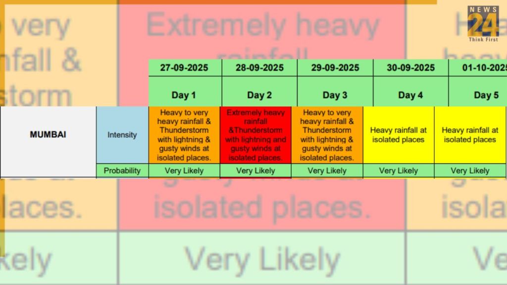 Mumbai Weather Update: After a stormy Saturday, rain lashed parts of Mumbai on Sunday morning. Torrential rain is further expected to sweep the city and adjoining districts, as the India Meteorological Department (IMD) has predicted extremely heavy showers accompanied by thunderstorms, lightning, and gusty winds today. A red alert has been sounded for Mumbai, Thane, Raigad, Palghar, Ghats of Nasik, and Pune on September 28.