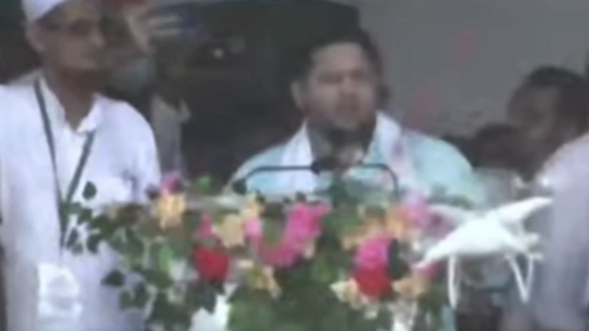 Bihar Opposition Leader Tejashwi Yadav escaped disaster by a whisker while delivering his speech during the “Waqf Bachao, Samvidhan Bachao” conference organized at Gandhi Maidan.
