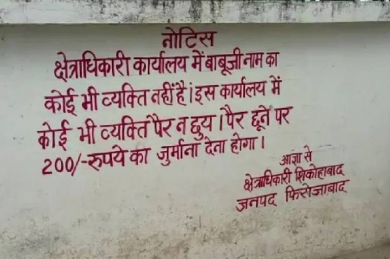 To improve the image of the police, notices have been put on the walls of all the offices under the initiative of CO Shikohabad Kamlesh Kumar. It is written in the notice that “If any complainant touches the feet of any Babu, employee or officer for getting his work done, he will be immediately charged a fine of Rs 200. Because the people working here are servants, there is no Babuji.