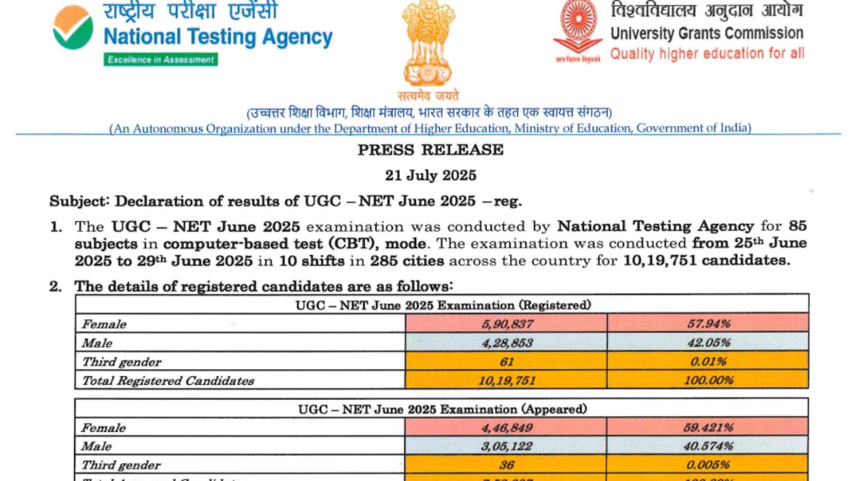 The National Testing Agency (NTA) has released the results for the University Grants Commission-National Eligibility Test (UGC-NET) June Cycle 2025 today, July 22. Candidates who have taken the examination can check and download the result from the official website ugcnet.nta.ac.in.