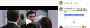 Ranbir Kapoor’s wife and Bollywood actor Alia Bhatt also shared the teaser on her official Instagram account and said,”No caption needed, because this one is fire. #Animal in theatres December 1″.