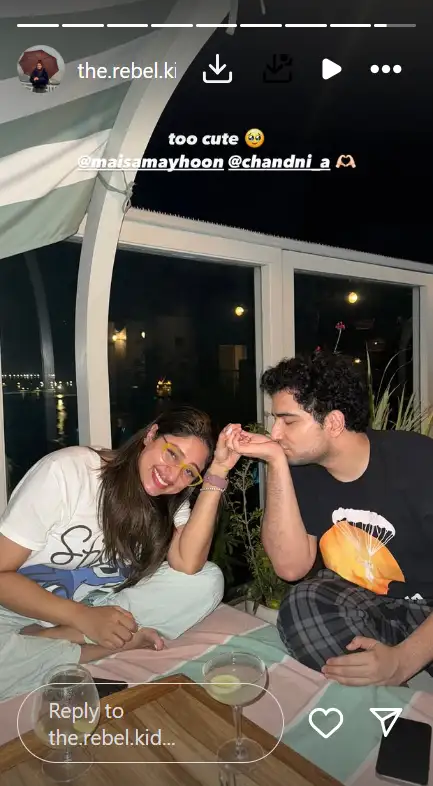 Apoorva re-shared the story, praising the song choice. Later, she posted another photo of Samay along with a mutual friend, much to the delight of their fans.