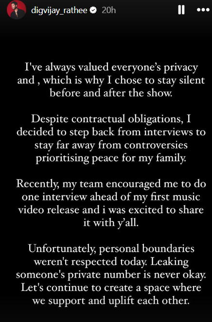 Digvijay said his team motivated him to give an interview before his first music video came out. He shared this interview on social media. He also talked about the situation, stating, “Unfortunately, personal boundaries weren’t respected today. Leaking someone’s private number is never okay. Let’s continue to create a space where we support and uplift each other.”