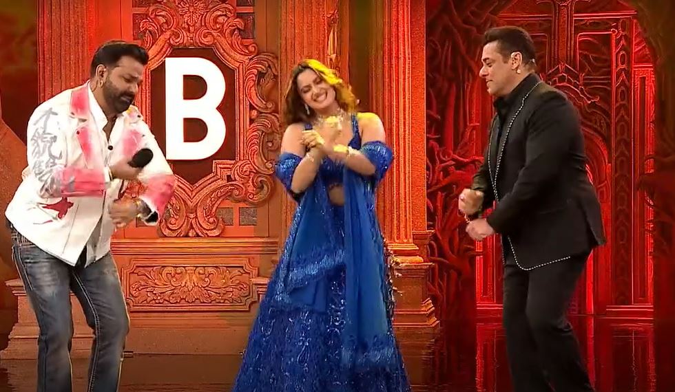 Pawan Singh grooves with Salman Khan and Neelam Giri to his popular song. The moment was truly one of the highlight of the entire episode.