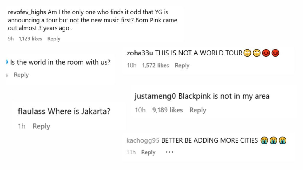 BLINKS argued that the world tour does not even include many countries as YG Entertainment has restricted the shows to European countries and the US.
