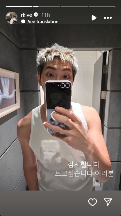 In one of his Instagram stories, RM shared a message for BTS ARMY and wrote, “I miss you.”