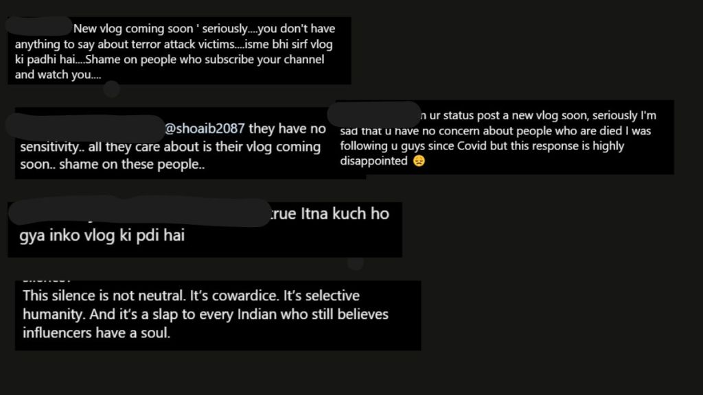 Even though their fans were assured of their safety, Shoaib’s message did not sit well with many netizens. They called out the couple for their silence on the attack and trolled them for worrying about the vlog in this sensitive times.