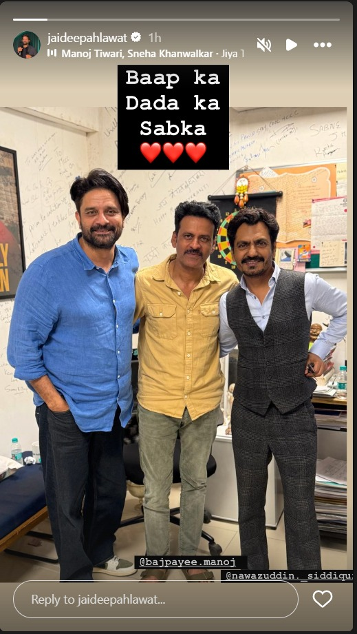 Jaideep Ahlawat, the actor who played Shahid Khan in the original Gangs of Wasseypur, has been quite active on social media recently, posting content that has fans abuzz with speculations of a potential third part. In his latest Instagram story, he shared a picture with Manoj Bajpayee who played Sardar Khan and Nawazuddin Siddiqui who played Faizal Khan and wrote “Baap ka Bhai Ka Dada ka..” which is an iconic dialogue of the film.