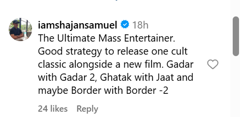 While Sunny Deol has not yet commented on the re-release, his fans have already expressed their excitement on social media. Many are looking forward to reliving the era when Bollywood action films were raw, intense and emotionally charged.