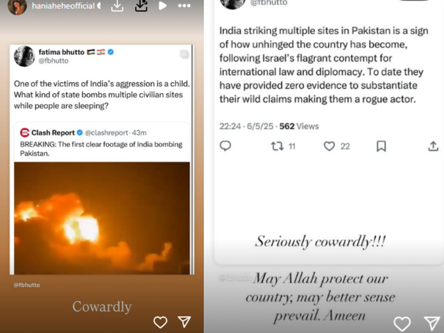 The two actresses went on to post on Instagram their distaste for the cross-border mission. They branded India’s move as “a cowardly act” and there was social media discussion, including both praise and criticism from their fans across the border.