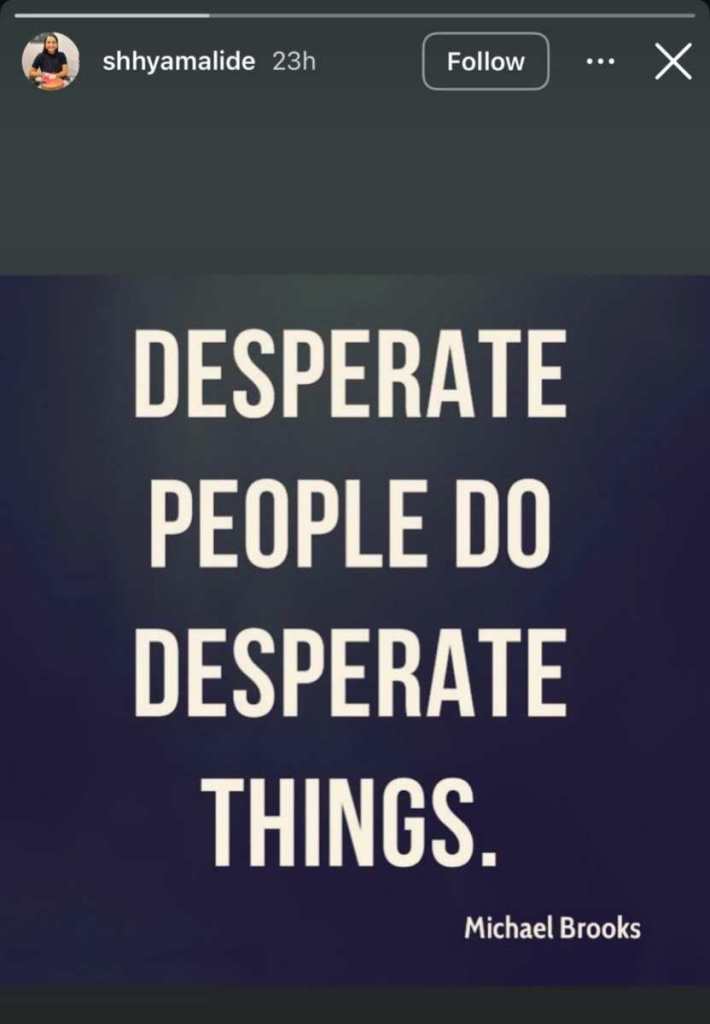 After the wedding news, fans noticed a mysterious Instagram story from Raj’s ex-wife, Shhyamali De, that said: “Desperate people do desperate things.” The post appeared just hours before the wedding was confirmed. She didn’t name anyone, but people speculated it was about the couple.