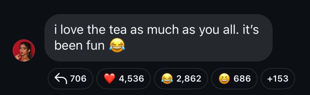 Apoorva has not directly addressed his recent video, but her Instagram activity seemed to send cryptic responses. On her broadcast channel, she wrote, “I love the tea as much as you all. it’s been fun.”
