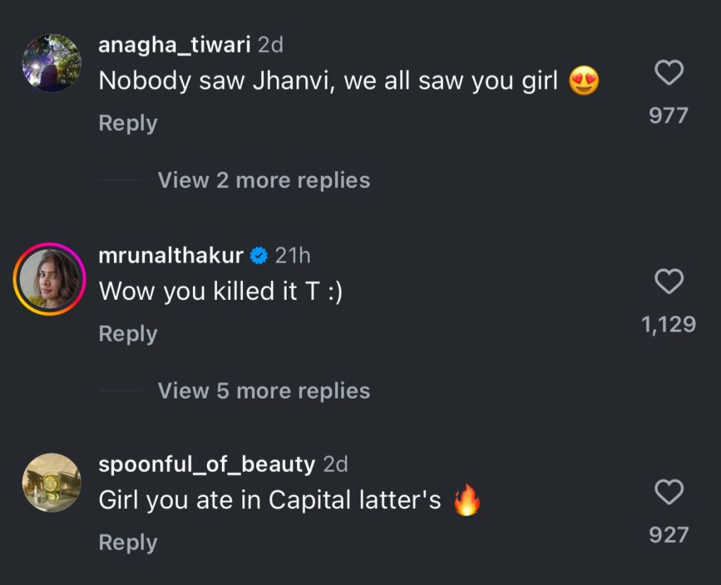 Others went on appreciating her impressive runway walk “Girl you ate in capital letters” and ” You eat 100 Jhanvi Kapoors in Breakfast. Go slay girl” as the model completely outshined the Kapoor.