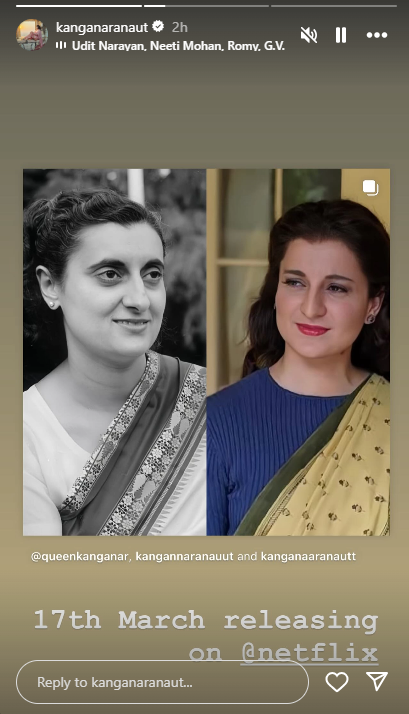Kangana shared a post from her fans on her social media, which showed pictures of her and former Prime Minister Indira Gandhi. She added the message, “17th March releasing on @netflix.” This means fans can watch Emergency on Netflix starting March 17. The film was released in theatres on January 17 this year and made ₹21.65 crore in India, according to Sacnilk.com.