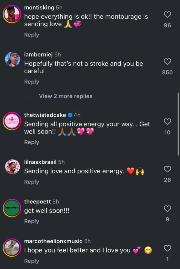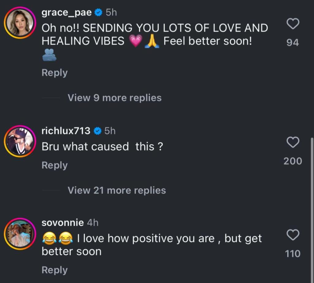 The video quickly garnered love and support from the fans. One fan being concerned about the rapper’s health wrote “Oh no!! Sending you lots of love and healing vibes Feel better soon!“ while another appreciated how positive the rapper is about the situation “I love how positive you are, but get better soon” while others showered love saying ” I hope you feel better and i love you”.