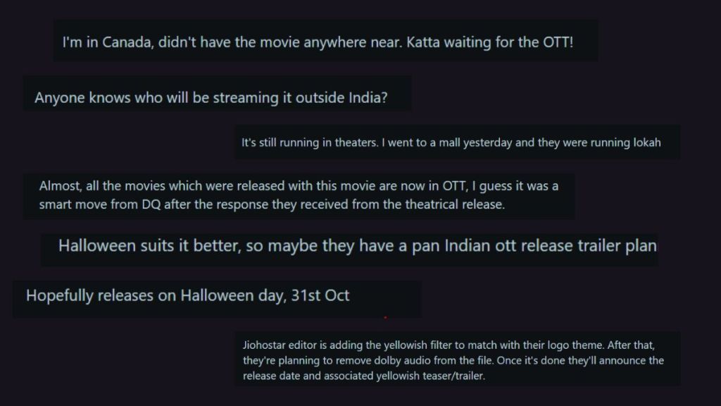 Fans have been eagerly waiting to see ‘Lokah Chapter 1′ on OTT and were hoping that the film would arrive online on Diwali 2025. See the netizens’ speculations regarding the film’s OTT release.