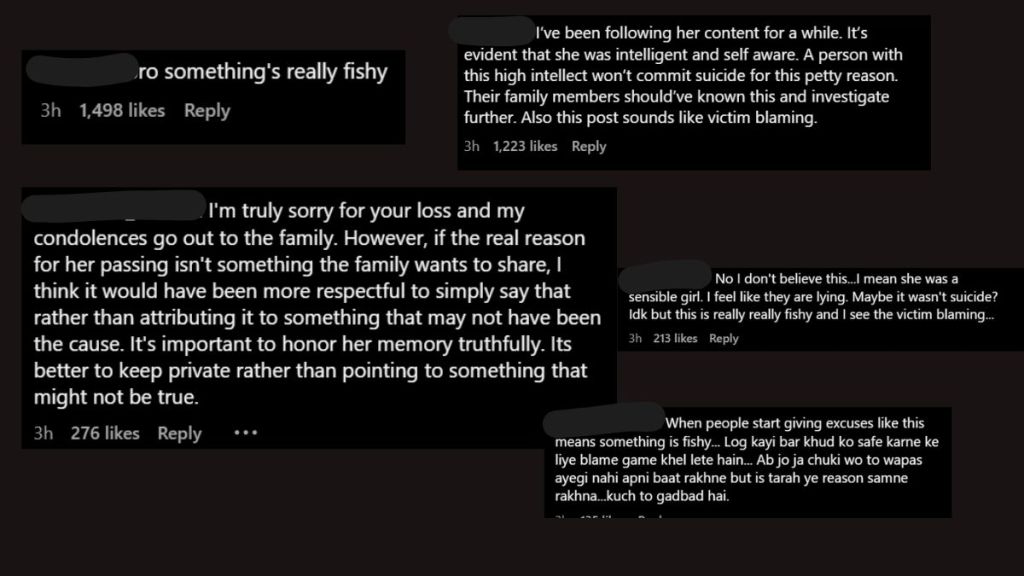 The post has sparked mixed reactions from Misha’s fans and followers. Although they expressed their grief over Misha’s sudden and heartbreaking demise, but many felt that there might be some other reason behind her suicide. One Instagram user wrote, “I spoke to her many times, she truly believed in herself and was headstrong and confident. She knew she would achieve this number. This seems like a cover, she seems to be going through something on her personal front. The family should probe further, I saw some of her close stories in the past and it seems like she was affected by her emotions due to a person. This is so devastating.”