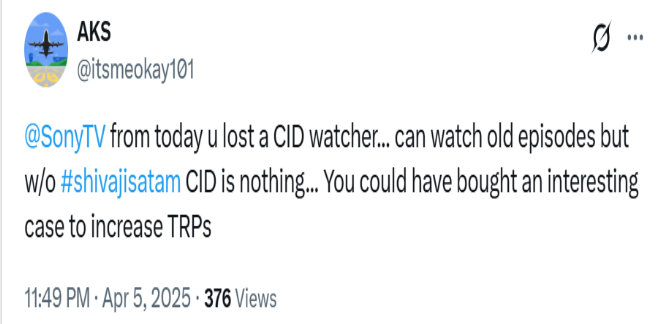 “CID is all about ACP Pradhyuman, just like Bahubali is all about Prabhas…it should be either with Shivaji Satam or CID will be a super flop like Transporter 4. Nobody can match #Shivaji Satam,” another fan commented.