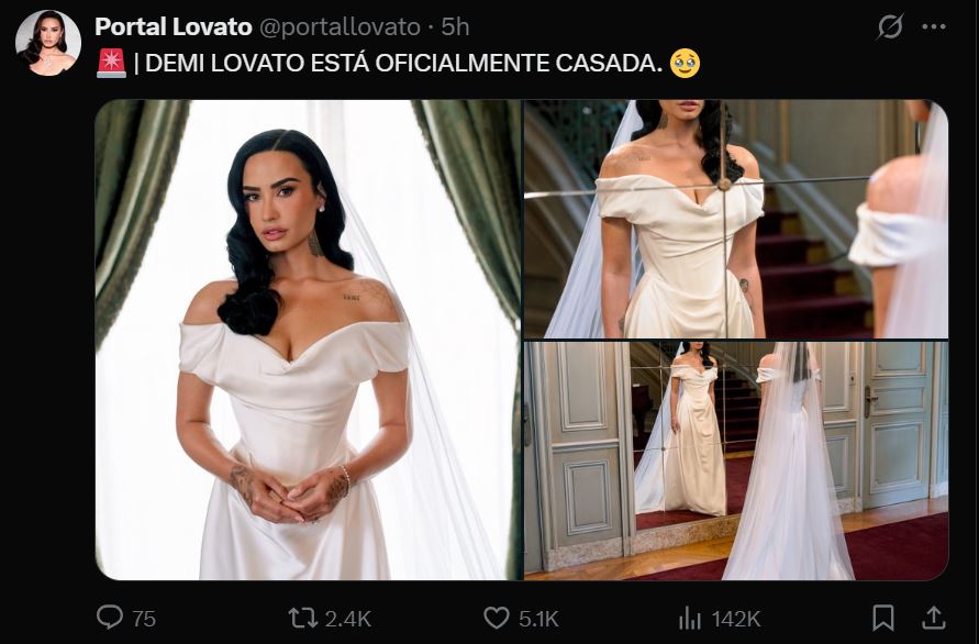 "“Quando eu estava pensando [no estilo de vestido que queria], frequentemente me pegava voltando aos designs da Vivienne — especificamente como as silhuetas realmente valorizam as curvas do corpo, e o uso que ela faz de espartilhos”. Demi completou o visual com um véu estilo… pic.twitter.com/YPOvnkW8Qx