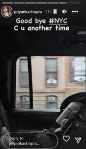 In the picture, the little munchkin can be seen seated in her baby car seat, as she intently gazed outside the window. Sharing this photo, Priyanka wrote, “Good bye #NYC C U another time.”