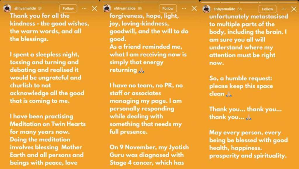Samantha and Raj didn’t respond to the rumours, but Shyyamali finally shared her side through two emotional Instagram stories. She said she had been feeling drained for days and thanked everyone who showed her support. The kindness from so many people meant a lot to her during this difficult time.