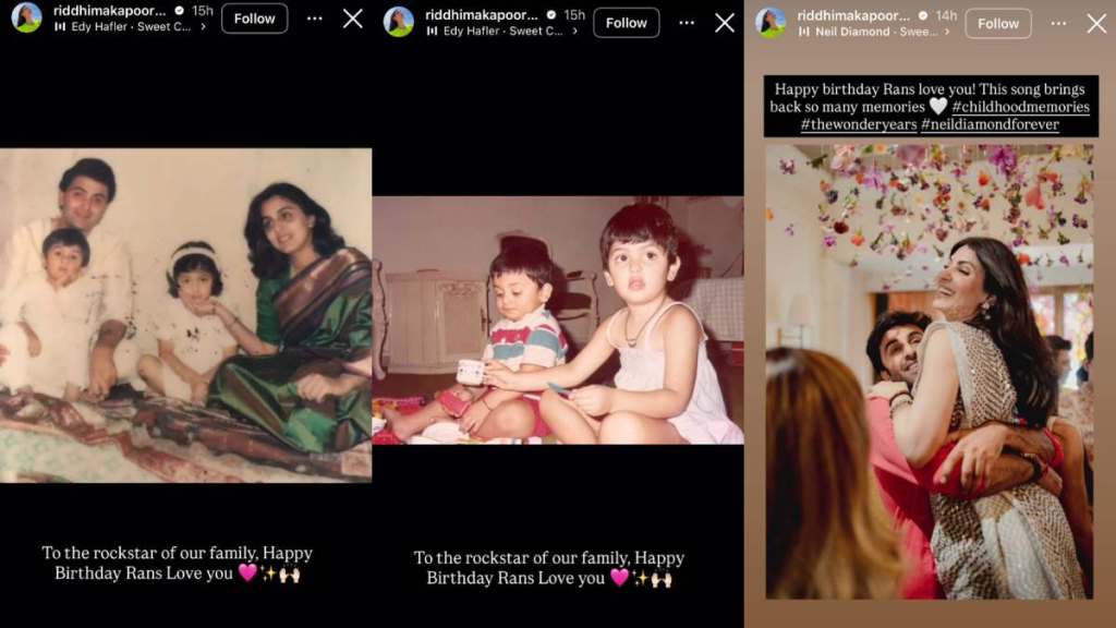 Ranbir’s sister, Riddhima Kapoor Sahni, also shared unseen photos from their childhood, including a picture of a very young Ranbir and Riddhima with their late father, Rishi Kapoor, and mother, Neetu Kapoor. She captioned the post, “To the rockstar of our family. Happy Birthday Rans Love you.”
