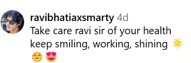 Following this revelation, Ravi’s fans flooded social media with messages of concern and support. Many were deeply moved by the images of his damaged car and injuries, wishing him a speedy recovery. Additionally, Ravi expressed that the incident helped him appreciate the true value of life even more. A user wrote “You are very strong already, stay strong.” Another wrote “Take care Ravi sir of your health keep smiling, working, shining.”