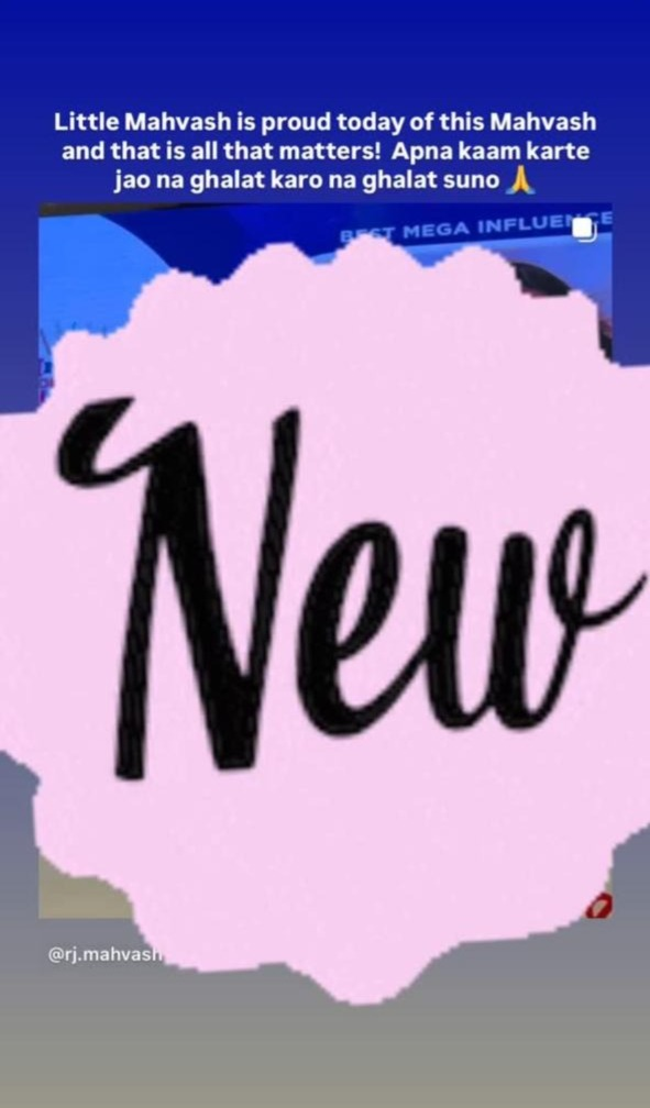 RJ Mahvash recently attended an award show, where she was awarded as the “Best Mega Influencer.” She shared this post on her Instagram story and wrote, “Little Mehwash is proud of the Mahvash she has become today, and that’s all that matters! Keep doing your work… neither do wrong nor listen to wrong.”