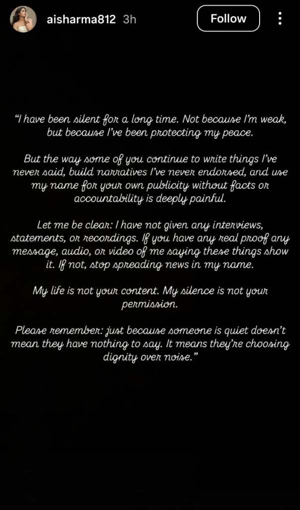 She wrote, “I have been silent for a long time. Not because I am weak but because I have been protecting my peace. But the way some of you continue to write things I have never said, build narratives I have never endorsed and use my name for your publicity without facts or accountability is deeply painful.”