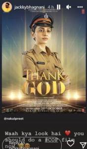 Even her boyfriend and actor Jackky Bhagnani took to his Instagram stories and praised his beau for the cop avatar. Sharing the poster he wrote, “Waah kya look hai…you should do a #COP film now.”