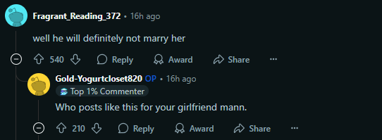 Screenshots of their stories quickly circulated on Reddit, where users called out the couple for their immature content. One Redditor commented, “Who posts like this for your girlfriend man.”